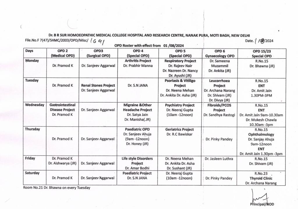 | ENT OPD | Tuesday & Thursday (1:30 p.m. – 3.00 p.m.) Wednesday (9:00 a.m. - 10:30 a.m.) |